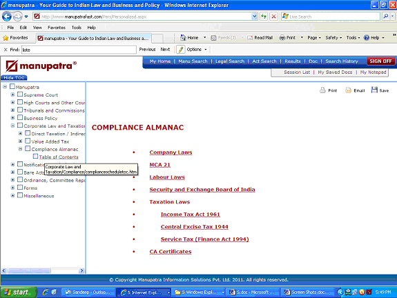 • All Important and relevant information is listed topic wise on one page enabling the user to identify and jump to the documents directly.