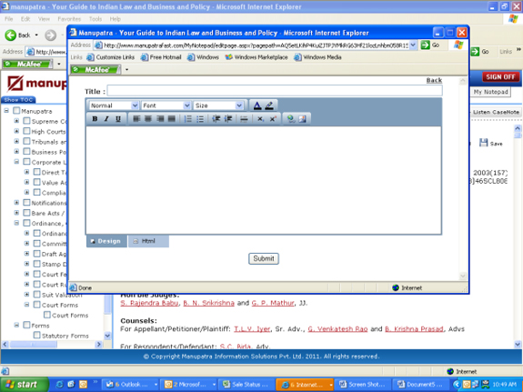 | The above utility will enable the user to make personal notes pertaining to a document being viewed by him, on that very particular page, which can be used for later reference. |