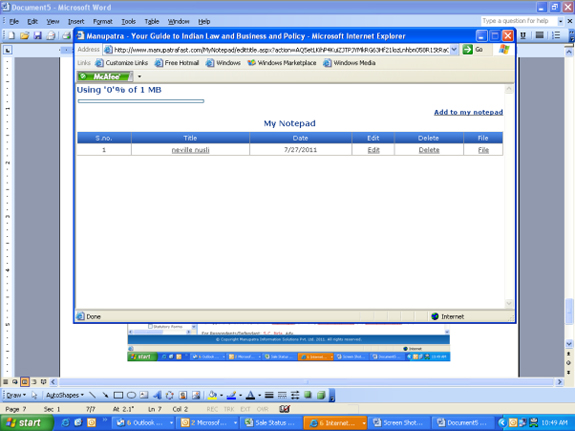 pertaining to that document, he can do so by clicking on “My Notepad”, shown as above. |