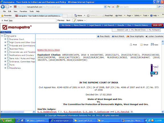 3. Click on the first result i.e. Binapani Kar Chowdhury vs. Sri Satyabrata Basu and Anr. (16.05.2006 - SC)
