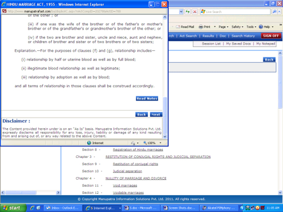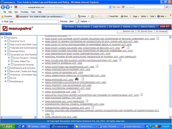 - Select Bare Act from the Act TOC. Eg. – Hindu Marriage Act (Image A).